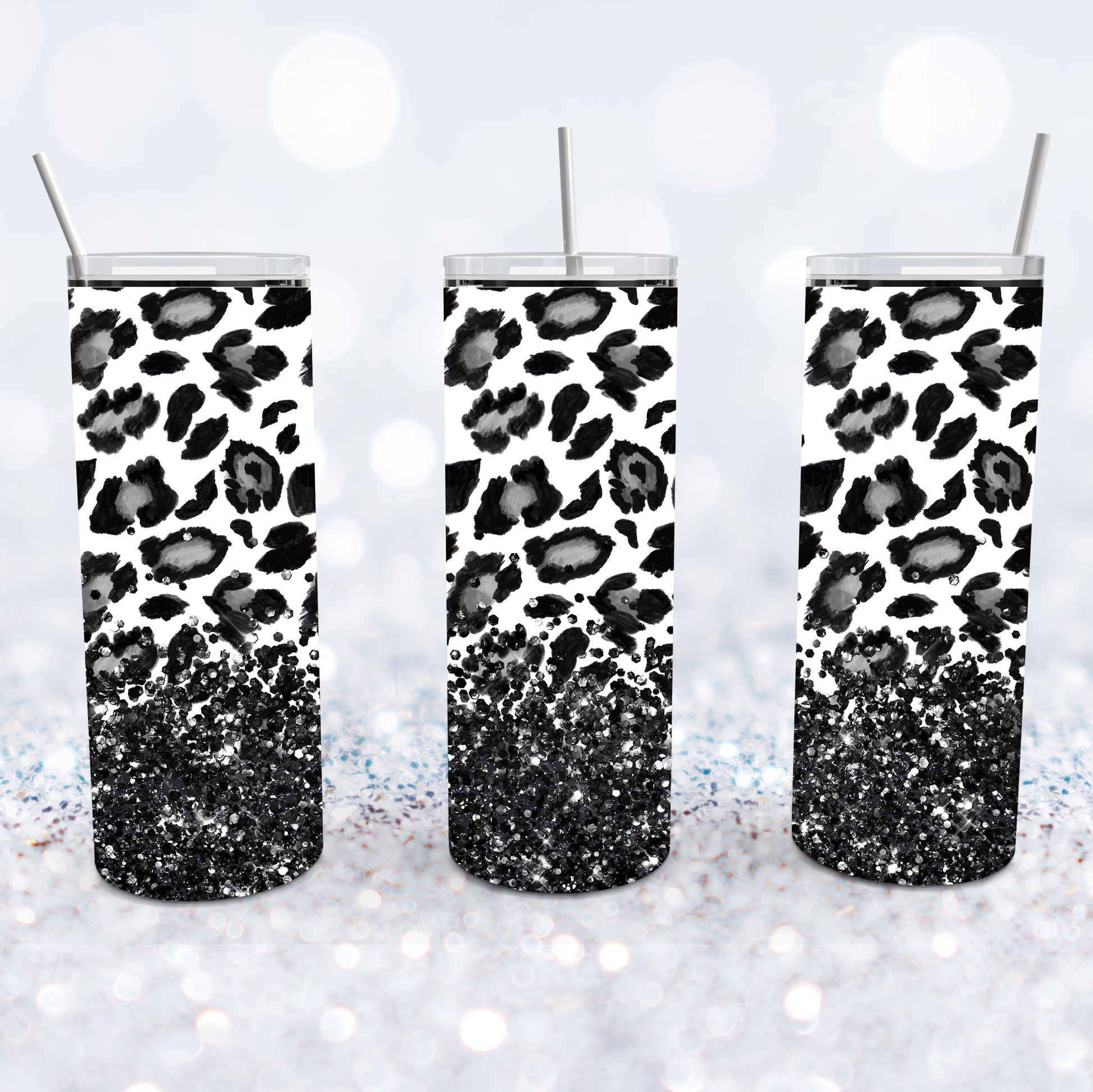 Black Leopard Glitter Tumbler