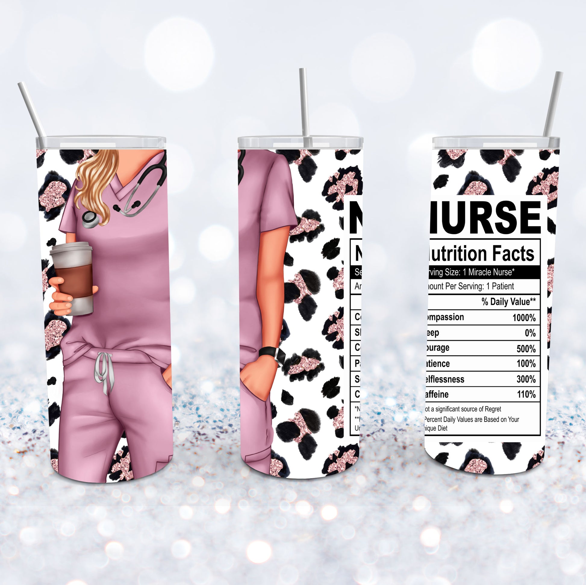 White Nurse Pink Leopard Tumbler